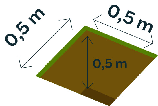 - Creusez des trous de 50 cm de longueur, largeur et profondeur aux emplacements de vos poteaux et jambes de force. (Emplacements réalisés à l’étape 1)