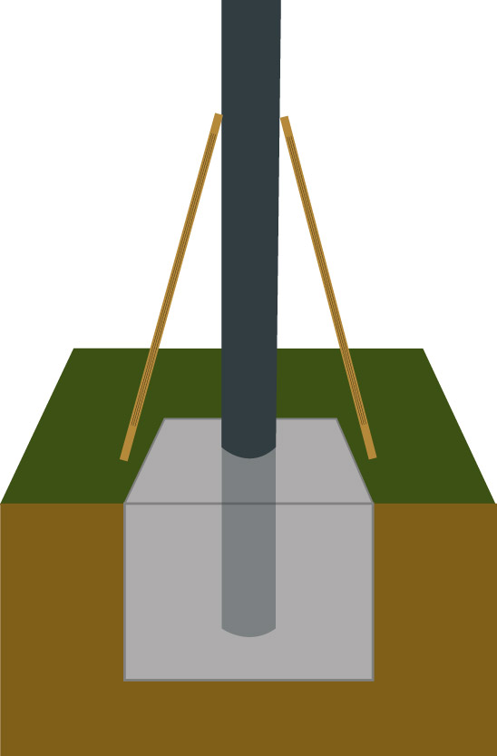 - Calez votre poteau avec des morceaux de bois pour qu’il reste droit et laissez sécher le béton.
